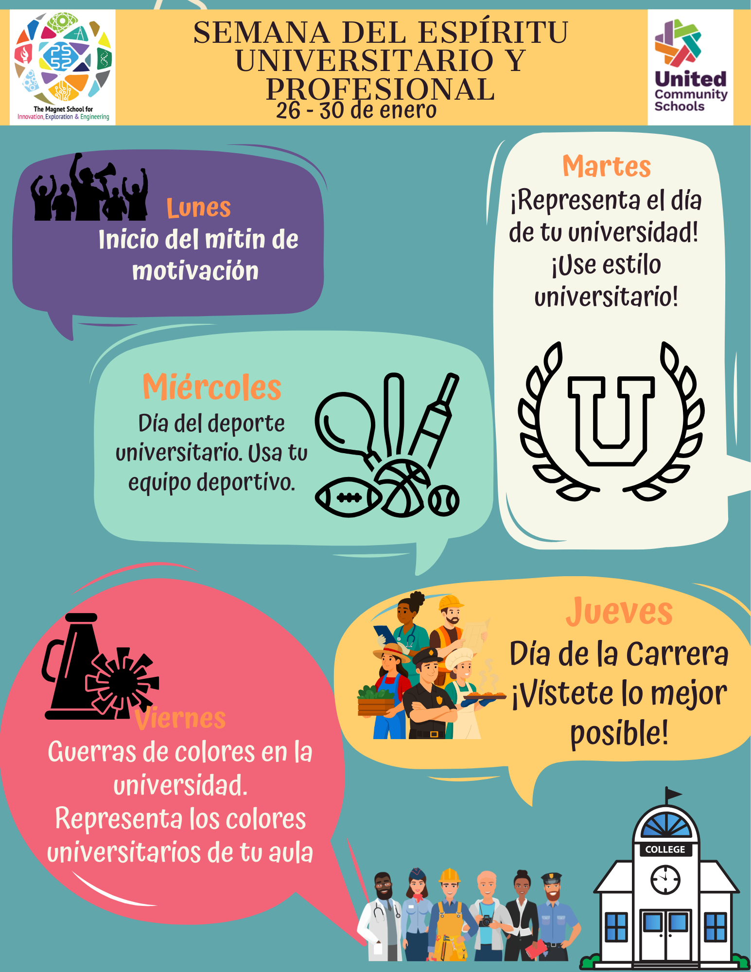 - Wednesday - College Sports Day - Wear Sports Gear